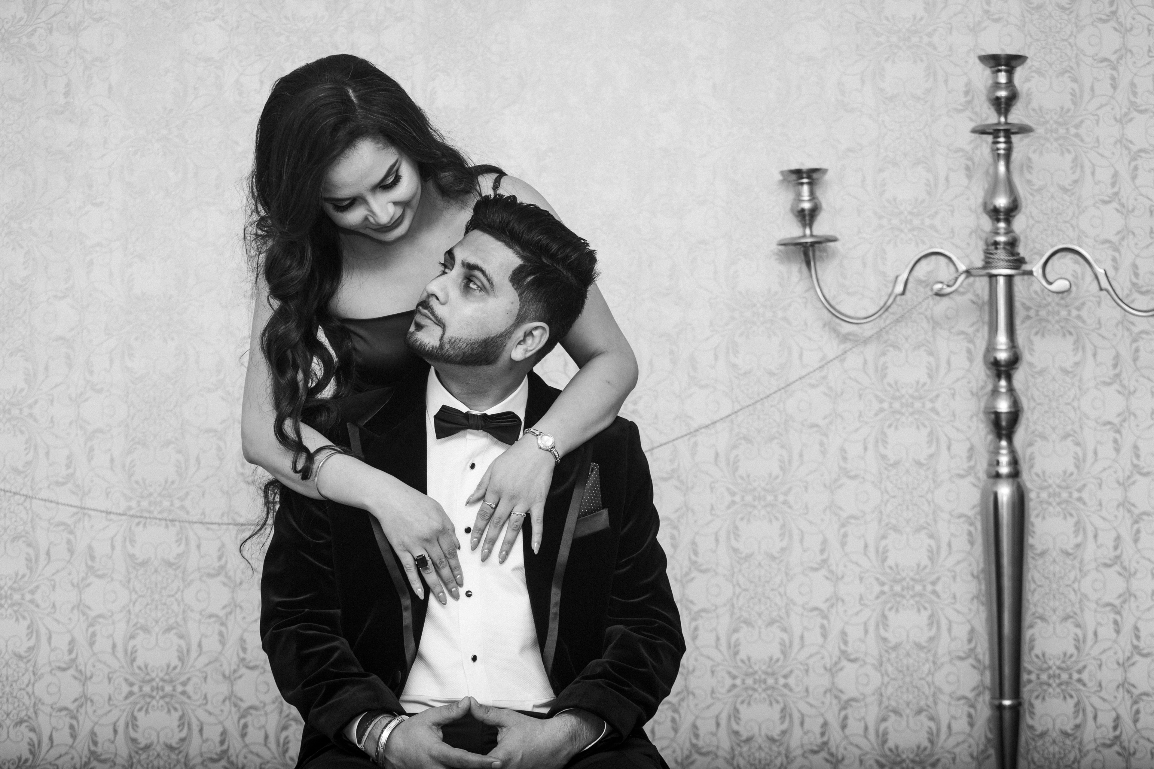 Black and white wedding portrait highlighting emotion in Montreal.